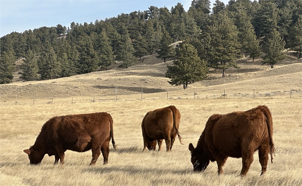 These heifers were vet ultrasound called 60–100 days bred on 9/11/25 and will calve starting March 3 for ~40 days. They are bred to high-end Red Angus bulls with strong EPDs across the board; birth weight EPDs run -2.6 to-3.7, combining calving ease with real performance. Heifers winter on foothills pasture, supplemented with ¾ in alfalfa cake, with free-choice black salt, Big Six mineral, and Crystal Phos tubs year-round.